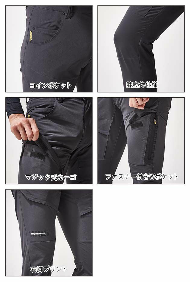 HUMMER ハマー 作業着 春夏作業服 Wストレッチスリムカーゴパンツ 17081