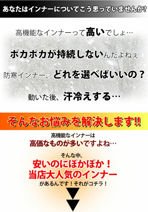 保温性+伸縮性+柔らかさのテックサーモ技術を採用 特殊レーヨンを使用し、人体から発散される水分に反応し、発熱・持続 長袖丸首タイプ 吸汗速乾仕様で動いた後も快適 ※こちらは単品です。※お得な5枚セットはコチラ→ |