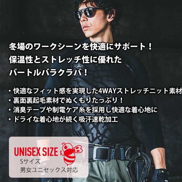 | 【特徴】 | 冬場のワークシーンを快適にサポート! 保温性とストレッチ性に優れたバートルインナー! ◆快適なフィット感を実現した4WAストレッチニット素材 ◆裏面起毛素材でぬくもりたっぷり! ◆消臭テープや制電ケア糸を使用し快適な着心地に ◆ドライな着心地が続く吸汗速乾加工 ◆縫い目の地肌への不快感を軽減するフラットロック縫製 ◆Sサイズは男女ユニセックス対応モデル ◆脇消臭テープ仕様 |