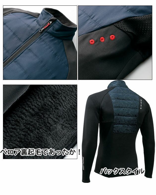 | 特徴 | 胴部ハイブリッド中綿と腕部マイクロベロア素材が、進化したぬくもりを実現。 通気ベンチレーション機能で作業中のムレ対策も万全。 ■前身・背面中綿使用・ベロア裏起毛であったか ■ストレッチ素材使用 ■再帰反射プリント ■背面通気ベンチレーション |
