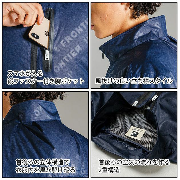 | 特徴 | アイズフロンティアが放つE.F.ウェアの新たなる世界。 リッチ&ポップな世界観がワークシーンに異彩を放つ。 ☆素材の一部表面にエンボス加工を施しさりげなくユーロテイストを表現。 ☆適度な密封性と引裂き強度を併せ持つポリエステルタフタを使用。 ☆背面首ぐり部分の構造により首元からの安定した風の排出を実現。 ☆背面のみファスナー付きランヤード接続口を搭載。 ・スマホが入る縦ファスナー付き胸ポケット ・風抜けの良い立ち襟スタイル ・首後ろの立体構造で衣服内を風が駆け巡る ・首後ろの空気の流れを作る2重構造 ・商品上部に独自の世界観を表現したエンボス加工素材を使用 ・背中に空気を冷やす保冷剤用ポケット ・背面にフルハーネス対応ファスナー付きランヤード取出し口搭載 |