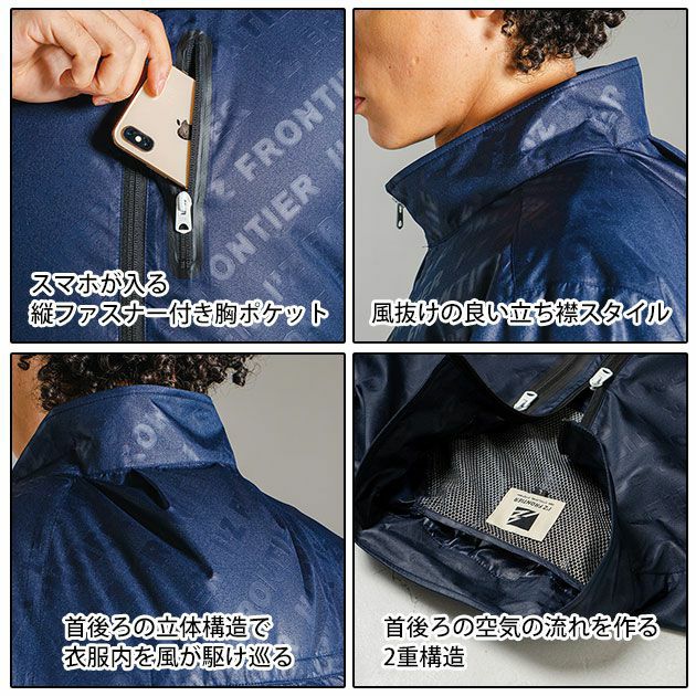| 特徴 | アイズフロンティアが放つE.F.ウェアの新たなる世界。 リッチ&ポップな世界観がワークシーンに異彩を放つ。 ☆素材の一部表面にエンボス加工を施しさりげなくユーロテイストを表現。 ☆適度な密封性と引裂き強度を併せ持つポリエステルタフタを使用。 ☆背面首ぐり部分の構造により首元からの安定した風の排出を実現。 ☆背面のみファスナー付きランヤード接続口を搭載。 ・スマホが入る縦ファスナー付き胸ポケット ・風抜けの良い立ち襟スタイル ・首後ろの立体構造で衣服内を風が駆け巡る ・首後ろの空気の流れを作る2重構造 ・商品上部に独自の世界観を表現したエンボス加工素材を使用 ・背中に空気を冷やす保冷剤用ポケット ・背面にフルハーネス対応ファスナー付きランヤード取出し口搭載 ・36、38、S、Mサイズは女性対応型モデル |