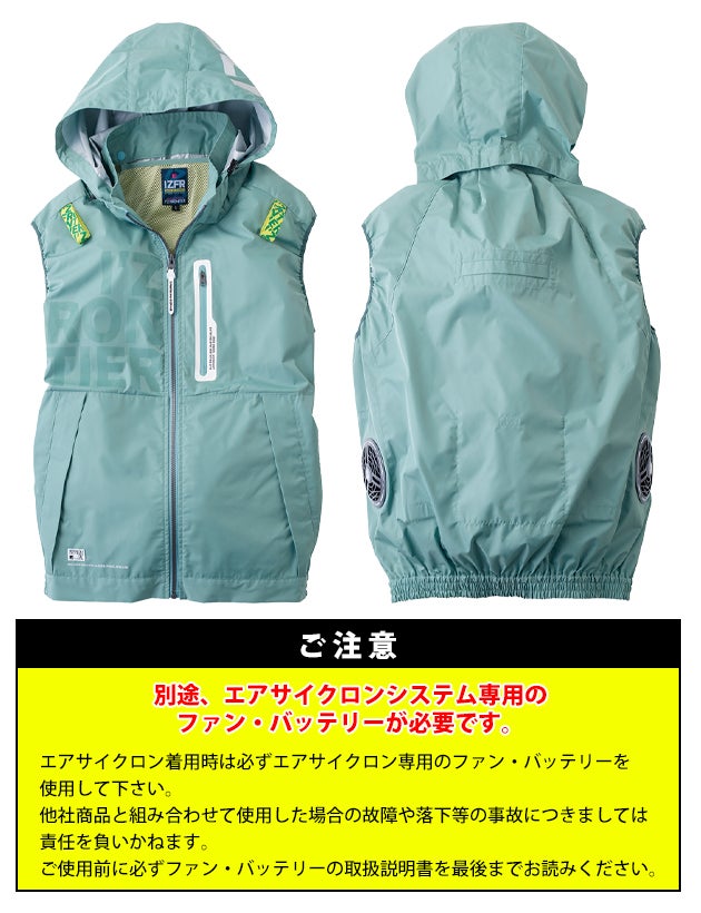 | 【ご注意】 | ・こちらの商品はウェアのみの販売となり、ファン・バッテリーは別売りです。 ・AIR CYCLONE SYSTEMご着用の際は、必ず専用ファン・バッテリーをご使用ください。 ・他社のファン・バッテリーを使用した際の事故や故障につきましては責任を負いかねます。 |