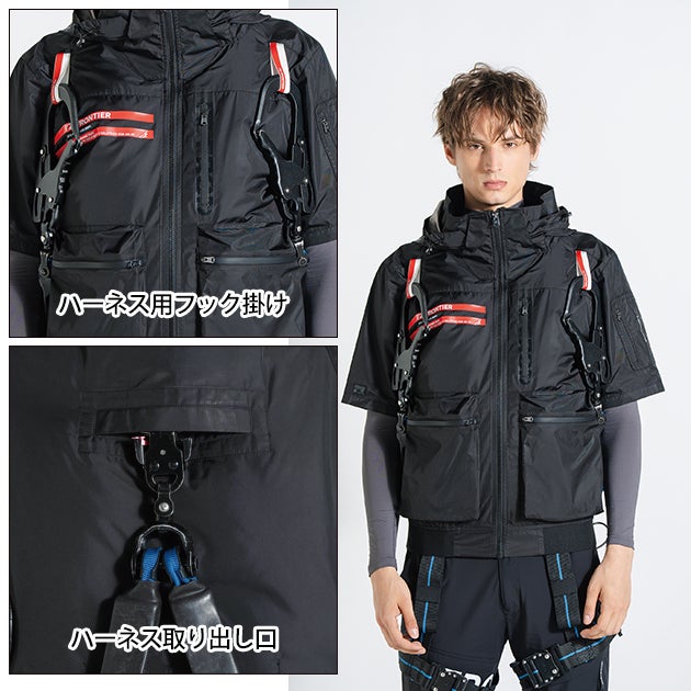 | 【特徴】 | アイズフロンティアが放つE.F.ウェアの新たなる世界観。 研ぎ澄まされた美意識が導く、洗練のアクティブエレガンスモデル。 アクティブスタイルをモードの領域へ。 ◆安全帯などの着用がしやすく、首への風抜けが強化されたミドルバックファン仕様。 ◆シーンを超えて存在感を放つゴージャスマインド溢れるルックス。 ◆胸ポケットファスナーは止水仕様。 ◆ハーネス対応テープは内側に収納できます。 ◆内ポケットはマチ付きファスナー仕様。 ◆脇ポケットは立体構造の大容量二重構造ファスナーポケット。 ◆背面裏には面ファスナー付き保冷剤ポケットを搭載。 ◆腰の締め付けがソフトなロゴ入りジャガードゴムベルト。 ◆衣服内の空気を循環させる立体特殊構造(首ぐり部分) ◆フードは取り外し可能なフルハーネス仕様。 ・フルハーネス対応。ハーネス用フック掛けとハーネス取り出し口を装備 ・取り外し可能な大型フード使用 ・フロントのマチ付き立体ダブルポケット ・首後ろの立体構造で衣服内を風が駆け巡る ・首後ろの空気の流れを作る二重構造 ・高い遮熱性とUVカット率で衣服内温度上昇を抑える裏アルミコーティング ・背中に空気を冷やす保冷材用ポケット |