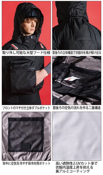 | 【ご注意】 | ・こちらの商品はウェアのみの販売となり、ファン・バッテリーは別売りです。 ・AIR CYCLONE SYSTEMご着用の際は、必ず専用ファン・バッテリーをご使用ください。 ・他社のファン・バッテリーを使用した際の事故や故障につきましては責任を負いかねます。 |