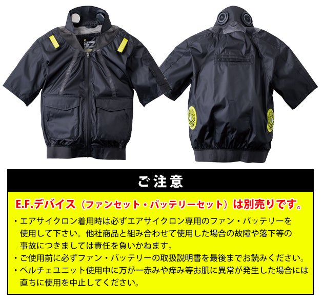 | 【ご注意】 | ●ウエア+#PS102ペルチェデバイス(2個)+#90021新型モバイルバッテリーのセットです。E.F.デバイス(ファンセット・バッテリーセット)は別売りです。 ●こちらのウェアはセット販売のみとなります。 ●AIR CYCLONE SYSTEMご着用の際は、必ず専用ファン・バッテリーをご使用ください。他社のファン・バッテリーを使用した際の事故や故障につきましては責任を負いかねます。 ※万が一赤みやかゆみ等、お肌に異常が発生した場合は直ちにご使用を中止ください。 |
