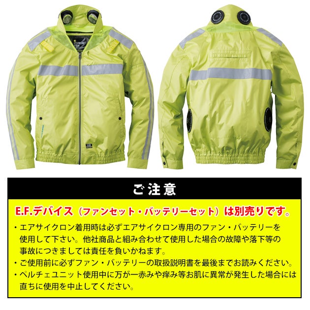 | 【ご注意】 | ●ウエア+#PS102ペルチェデバイス(2個)+#90021新型モバイルバッテリーのセットです。E.F.デバイス(ファンセット・バッテリーセット)は別売りです。 ●こちらのウェアはセット販売のみとなります。 ●AIR CYCLONE SYSTEMご着用の際は、必ず専用ファン・バッテリーをご使用ください。他社のファン・バッテリーを使用した際の事故や故障につきましては責任を負いかねます。 ※万が一赤みやかゆみ等、お肌に異常が発生した場合は直ちにご使用を中止ください。 |