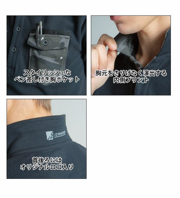 | 特徴 | よりタフに、より美しく。 個性と快適性を融合した”魅せ系”ポロシャツ登場! ◆しっかりとした生地感の交編鹿の子素材を使用。シーンを選ばないカジュアル感と爽やかな着心地を実現! ◆吸水速乾加工と抗菌防臭加工を施し、さらなる快適性を実現。 ◆衿上部にシリコンワイヤーを使用し、美しい立ち襟状態をキープ ◆こだわり抜いたタイトシルエットが魅せる男を演出! ◆2種類の塗料で仕上げたプリント柄が個性を発揮! ◆スタイリッシュなペン差し付き胸ポケット ■胸元をさりげなく演出する内側プリント ■首後ろにはオリジナルロゴ入り |
