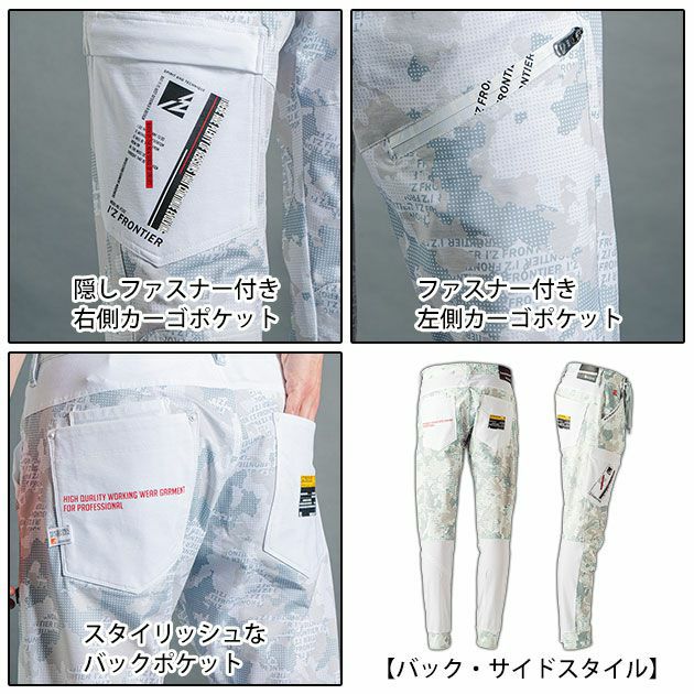 | 特徴 | 究極の個性派新たなステージへ。 アイズフロンティアが表現する新感覚ユーロテイストワークパンツ、降臨。 各種品質で高い数値をたたき出した高性能ハイスペックモデル! ☆特殊な異形断面糸を使用、高い吸水速乾機能によるサラっとドライなパウダータッチが魅力。 ☆伸長率タテ約26%、ヨコ約43%、伸長回復率(1時間後)タテ約95%、ヨコ約95%を誇る優れたストレッチ性。 ☆ハイレベルな破裂強度(777kPa)、抗ビリング性(5級)、抗スナッグ性(4.5級以上)等、 抜群の強度を併せ持つ完成度の高い1着に仕上がっています。 ☆遮蔽率99.5%_UPF45を誇る優れたUVカット効果。 ☆無地素材と柄素材(エンボス加工or迷彩プリント)を効果的に配し、 各部位に大胆なロゴプリントを施したすきのないデザイン性が唯一無二の個性を発揮します。 ・隠しファスナー付き右側カーゴポケット ・ファスナー付き左側カーゴポケット ・スタイリッシュなバックポケット |