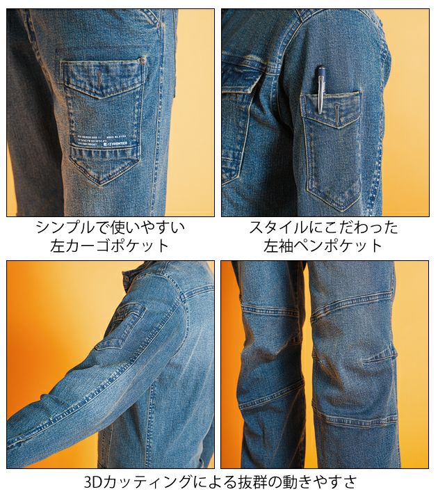 | 特徴 | 伝承継承 長きにわたり愛されたデニムオーバーオールの正統派後継モデルがよりカジュアルなルックスを纏い新登場。 ◆年間通じて着用可能な9オンスストレッチデニム素材を採用。適度なストレッチ性が快適な動きやすさを実現します。 ◆素材のみならず、絶妙な3Dカッティングにより更なる動きやすさとスタイリッシュなルックスを両立 ◆ヴィンテージライクなスラブ糸を配合した素材感とリタリングプリントによりさらなるカジュアル感アップを実現 ◆金属ファスナー、ドット釦等は国産YKK社製を使用。細部にまで品質にこだわっています ・スタイルにこだわった左袖ペンポケット ・シンプルで使いやすい左カーゴポケット ・3Dカッティングによる抜群の動きやすさ |