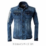 | 【特徴】 | 7350 SERIES The headliner has descended! その機能、そのルックス、 アイズデニム10年の歴史がたどり着いた一つの理想系。 新たなディケイドが今はじまる。 ◆不朽の名作#7340シリーズを機能性、 ルックス両面で鮮やかにブラッシュアップ。 新たな時代のメインストリームを疾走するフラッグシップモデルが登場。 ◆しっかりとした質感の10.5オンスストレッチデニム素材を採用。 ハードワークに適した肉厚感の素材な がらもレーヨン配合による適度なしなやかさも併せ持ちます。 ◆伸長率 (ヨコ) 約69%、 伸長回復率 (1時間後) 約90%を誇る驚異的なストレッチ性能。 左右方向のみのストレッチ性能でありながら、 アイズデニム史上屈指の動きやすさを実現します。 ◆素材のみならず、絶妙な3Dカッティングにより更なる動きやすさとスタイリッシュなルックスを両立。 収納性も高く全ての面で高いパフォーマンスを発揮します。 ◆その素材構造により一般基準比タテ約5倍、 ヨコ約6倍の脅威の引裂き強度を誇る高堅牢性モデル。 ◆アイズならではのオリジナリティーの高いブランドロゴプリントを施した、 ユーロテイスト漂う気品高いデザイン性。あらゆるシーンで強い存在感を発揮します。 ◆金属ファスナー、 ドット釦等は国産YKK社製を使用。 細部にまで品質に拘っています。 ・ファスナーとボタンと前立て2重構造 ・スタイリッシュな左袖ペンポケット ・左脇内ポケット ・3Dカッティングによる抜群の動きやすさ |