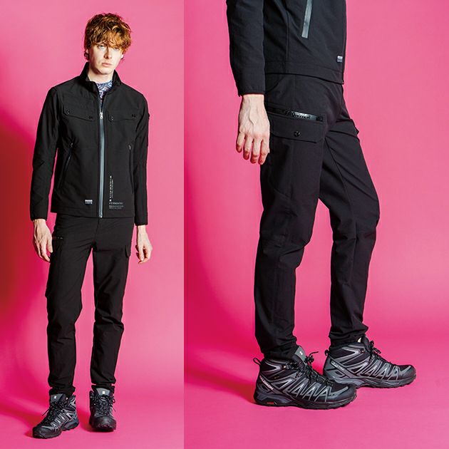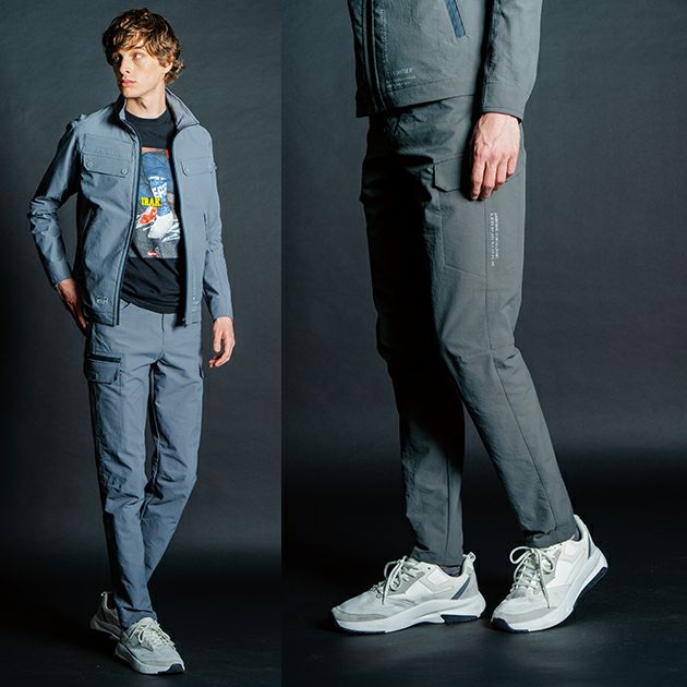 | 【特徴】 | Shape of the near future スポーツやアウトドア等、様々なファクターを融合した次世代モデルが 新たなシーンを創出する。近未来のかたちが今ここに・・・。 ◆ポリエステル100%ながら、高級感のあるナイロンライクな風合いを実現。生地にシワ加工を施す事により立体感を表現し、従来のポリエステルにない独創的な素材感を実現しました。 ◆表側はシンプルでシャープなルックス、裏側は柔らかな肌触りとウォーム感を併せ持つ二重織構造素材を採用。現代のスポーツシーンに求められる軽量感がありながら優れた保温性を発揮。 ◆しなやかなクリンプ形成による特殊構造加工糸によりポリウレタンにない耐久性を発揮。伸長率タテ約19%・ヨコ約21%、伸長回復率(1時間後)約84%の適度な全方向ストレッチ性能を有し、ストレスのない快適な動き易さと、安定感のあるスタイリッシュなスタイルキープを実現します。 ◆軽量感のある素材ながらも一般基準を大きく超える引裂き強さ(タテ約16N・ヨコ約38N)を実現。抗ピリング性能等その他各項目も高い数値を測定した高堅牢性モデル。 ◆ハイレベルな導電糸を組み込み高い帯電防止性能を発揮。素材自体はJIST8118にも適合します。 ◆シーンを選ばないシンプルなデザインにアイズフロンティアならではの厳選されたレタリングプリントをプラス。さり気ないリッチ感を演出します。 ◆高級感のある止水ファスナーやYKK社製のドット釦等、細部にまで拘りを追求しています。 ・小物が入るコインポケット ・右側大型カーゴポケット ・3Dカッティングによる抜群の動きやすさ ※素材の特性により、商品の仕上がり寸法にやや誤差がございます。 |