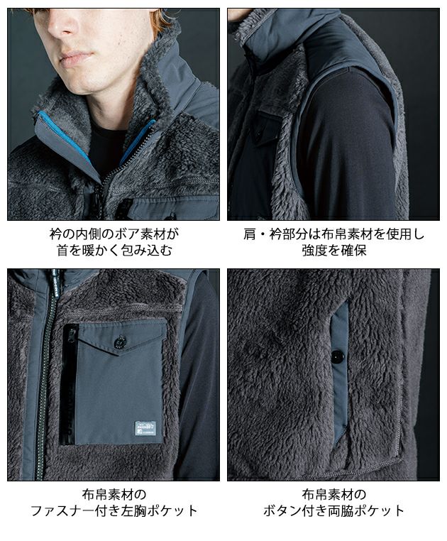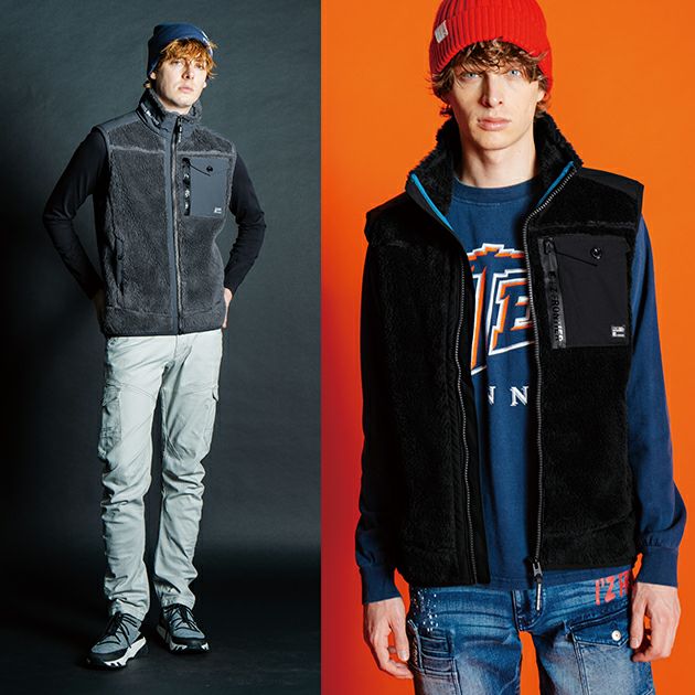 | 【素材】 | 本体:ボア+ダイヤニット防風ボンディング別布:全方位ストレッチ防風デュースポ |