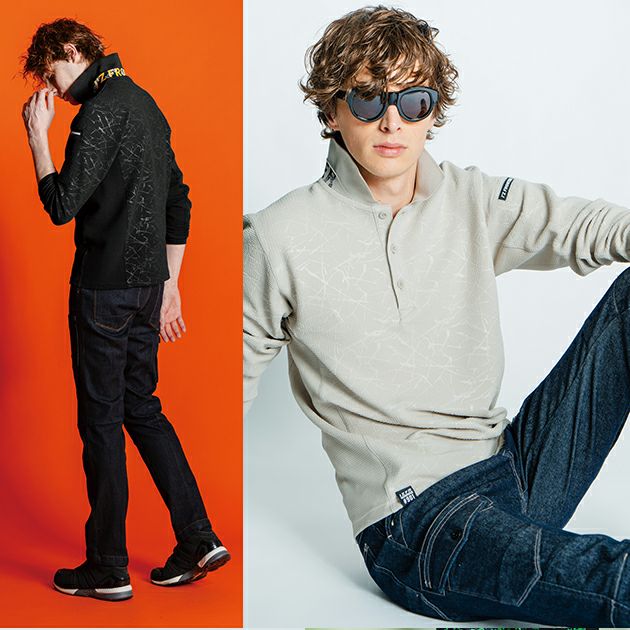 | 【特徴】 | Push the envelope! ワークシーンにとどまらないそのラグジュアリーなテイストが様々なシーンをリッチに演出。ユーティリティーウェアの概念を超えろ。 ◆目付250g/m2を誇る業界屈指の肉厚素材を使用した3シーズン対応ニットシャツモデル。 ◆特殊な編み構造により凹凸をなしたフクレジャガード素材にエンボス加工を施し更なる凹凸感をプラス。柄MIXの複合効果により高級な表面感を実現。 ◆快適性の高いニット素材の特性はそのままに、伸長率タテ約42%・ヨコ約41%、伸長回復率(1時間後)タテ約99%・ヨコ約99%を誇るハイレベルなストレッチ性能を発揮。型崩れが少なく寸法安定性にも優れています。 ◆優しい風合いも、破裂強度(693kPa)、抗ピリング性能(5級)、抗スナッグ性能(4.5級以上)等ハイレベルな強度を併せ持つ完成度の高い1着に仕上がっています。 ◆自在なスタイリングとデザイン性の高いルックスを可能とする2重リブ衿仕様のポロシャツ。 ◆シリコン素材やラバープリントなど、細部にまで拘りを追求した高いデザイン性。 ・衿裏ロゴが個性をアピール ・左袖ペンポケット ・脇と袖内側は異なる風合いの生地を仕様 ※素材の特性により、商品の仕上がり寸法にやや誤差がございます。 |
