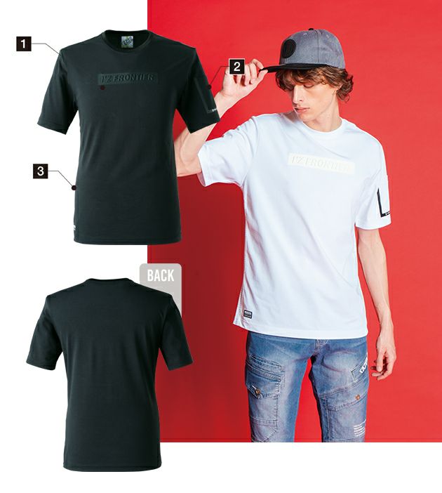 | 【特徴】 | 過酷な夏を接触冷感で快適に! アイズフロンティアが生み出した至高のTシャツ! ◆夏場に爽やかな着心地を発揮するシェープ製法糸 ◆裏面には吸汗速乾性と接触冷感性を併せ持つHIGHCOOLを使用 ◆さらりとした快適な着心地 ◆特殊プリントやエンボスなど、アイズフロンティアらしいラグジュアリーさを演出 ◆左袖ワイドペンポケット ◆両脇にパターン入りの別布を配置 |