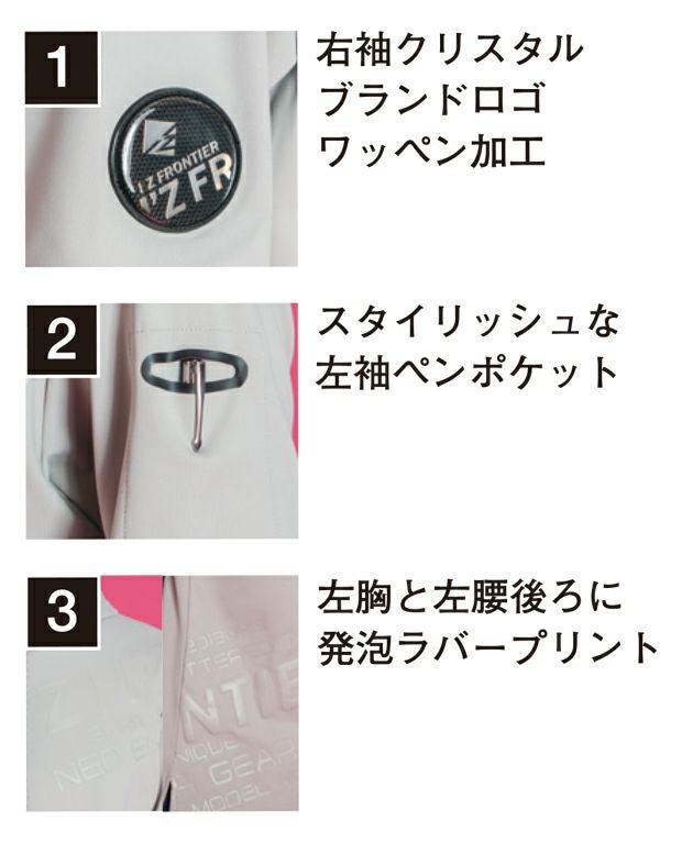 | 【特徴】 | 過酷な夏を接触冷感で快適に! アイズフロンティアが生み出した至高のパーカー! 適度にボリューム感のあるダブルジャージースムース素材を採用し、リッチな光沢感を発揮するラグジュアリーな1着に仕上げました。 ◆ヒンヤリする冷感鉱物を遷移に練りこむことでハイレベルな接触冷感機能を実現 ◆さらにマイナス6.5℃の高い遮熱性能を発揮し、猛暑での環境下での疲労感を軽減 ◆ハイレベルなUVカット機能も ◆ポリウレタン糸により高いストレッチ性を実現 ◆様々なブランドロゴプリントを採用し、アイズフロンティアらしいラグジュアリーさを演出 ◆右袖クリスタルブランドロゴワッペン加工 ◆スタイリッシュな左袖ペンポケット ◆左胸と左腰後ろに発泡ラバープリント |