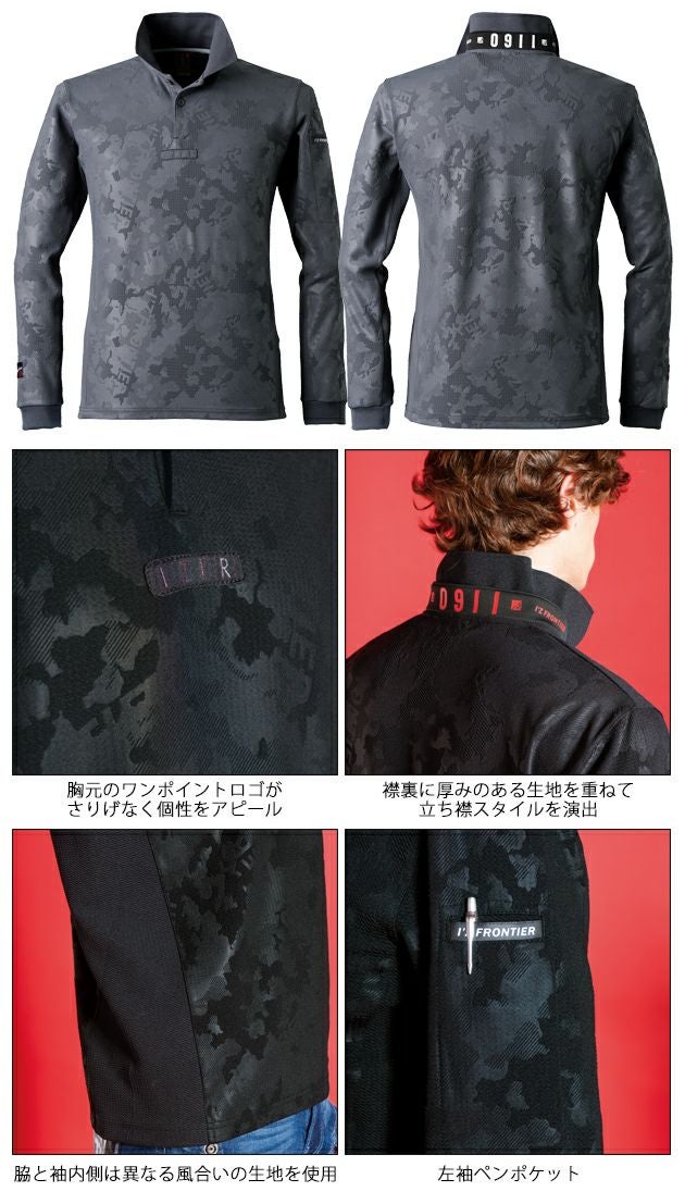 | 【特徴】 | Push the envelope! ワークシーンにとどまらないそのラグジュアリーなテイストが様々なシーンをリッチに演出。 ハイブリッドユーティリティーウェアは更なる変貌を遂げる。 ◆目付250g/m2を誇る業界屈指の肉厚素材を使用した3シーズン対応ニットシャツモデル。 ◆特殊な編み構造により凹凸をなしたフクレジャガード素材にエンボス加工を施し更なる凹凸感をプラス。 ◆柄MIXの複合効果により高級な表面感を実現。快適性の高いニット素材の特性はそのままに、伸長率タテ約42%・ヨコ約41%、伸長回復率(1時間後)タテ約99%・ヨコ約99%を誇るハイレベルなストレッチ性能を発揮。型崩れが少なく寸法安定性にも優れています。 ◆優しい風合いも、破裂強度(693kPa)、抗ピリング性能(5級)、抗スナッグ性能(4.5級以上)等ハイレベルな強度を併せ持つ完成度の高い1着に仕上がっています。 ◆自在なスタイリングとデザイン性の高いルックスを可能とする2重衿仕様のポロシャツ#911と、胸ポケット、袖ポケット、肩部分に布帛素材を使用し、機能とデザイン性をアップさせたクルーネックシャツ#903の、個性の異なる2モデルをラインナップ(#911はカモフラパターン、#903はレタリングロゴパターンとアイテムによって本体素材の柄も異なります)。 ◆3Dシリコンワッペンやラバープリントなど、細部にまで拘りを追求した高いデザイン性。 ・胸元のワンポイントロゴがさりげなく個性をアピール ・左袖ペンポケット ・脇と袖内側は異なる風合いの生地を仕様 ・衿裏に厚みのある生地を重ねて立衿スタイルを演出 |