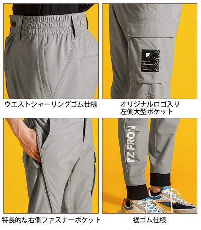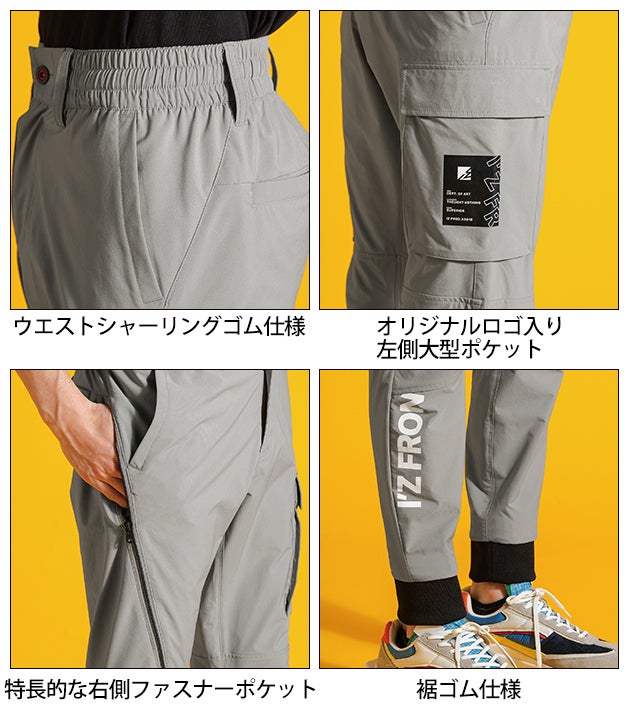 | 【特徴】 | One solution for summer comfort 夏の快適性を愚直に追求したどり着いた新たなる爽快感。 サマーワーカー御用達のI'Zプログレッシブドライモデル爆誕! ◆高い吸水速乾性能で夏のワークシーンの快適さを追求。 ◆生地の裏側に水分を寄せ付けないポリエチレン糸を点接触に裏打ちすることで、汗をかいた際に、水分が生地の外側に吸い上げられる為、肌側が常にドライな状態をキープします。 ◆サラッとした着心地と高いストレッチ性能で常に快適さをキープ。 ◆縦方向・横方向に軽快なストレッチ性(伸長率 タテ 約18.3%、ヨコ 約25.7%)で身体の動きをサポート。 ◆引き裂き性能は タテ約15.6N、ヨコ約31.4N、滑脱抵抗力縦横共に1mm以下の高堅牢性。 ◆遮蔽率97.8% UPF50+の優れたUVカット効果。 ◆特徴的な右側ファスナーポケット等、高い機能性も発揮。 ◆シンプルながらもI'Zらしいこだわりのディテール満載。 ・特徴的な右側ファスナーポケット ・オリジナルロゴ入り左側大型ポケット ・ウエストシャーリングゴム仕様 ・裾ゴム仕様 |