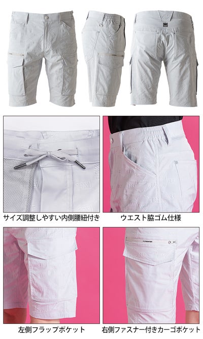 | 【特徴】 | Casual italiano di classe e reffinato 細部にまで拘った美意識が優雅さとリラックス感をあざやかに融合。 日常に溶け込むその品格はワークシーンに新たな価値を創造する。 I'Zエレガントラグジュアリーモデル、ここに極まる! ◆快適で動きやすい素材にゴージャスなディテールを加えたプレミアムなモデル。 ◆生地の二次加工として、3Dの立体エンボスを総柄で施し、生地と肌との設置面に凹凸が出来、汗をかいても生地が肌にまとわりつくことを防いで、快適な着心地を実現します。 ◆複合繊維を100%使用により、伸長率タテ約13.8%、伸長回復率(1時間後)タテ約78.7%のストレッチ性能を有します。 ◆遮蔽率90.8% UPF50+の優れたUVカット効果を発揮。 ◆インパクト抜群の総柄ロゴエンボス加工。 ◆動きやすいウエスト脇ゴム仕様。 ◆フラップ付き、ファスナー付き 二つのカーゴポケットで高い収納性を発揮。 ・サイズ調整しやすい内側腰紐つき ・右側ファスナー付きカーゴポケット ・左側フラップポケット ・ウエスト脇ゴム仕様 |