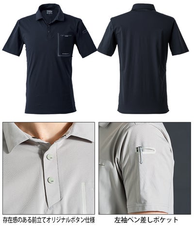 | 【特徴】 | A refined world that evokes the near future シンプルを極めたその無機質なデザインがラグジュアリーな上質感を遺憾なく発揮。 浮遊感ただようI'Z最軽量モデルが、ワークポロの未来のすがたを浮かびだす。 ◆軽量でしなやかな素材を採用したラグジュアリーデザインの上質なポロシャツ。 ◆複合繊維ポリエステルを100%使用したトリコット組織で、30Dの細番手の糸を高密度に配置することで、適度なハリ感と軽量感を両立しています。 ◆軽量生地でありながら透け感を抑えて、適度な吸水即乾性も実現しています。 ◆伸長率 タテ約25.3%・ヨコ約31.5%、伸長回復率(1時間後)タテ約88.1%・ヨコ約87.3%の高いストレッチ性能を誇ります。 ◆破裂強度(404kPa)、抗ピリング性(5級)等、高い強度を誇ります。 ◆存在感のある前立てオリジナルボタン仕様、右シームテープデザインポケット等でシンプルかつ先進的デザインを演出。 ・左袖ペン差しポケット ・存在感のある前立てオリジナルボタン仕様 |