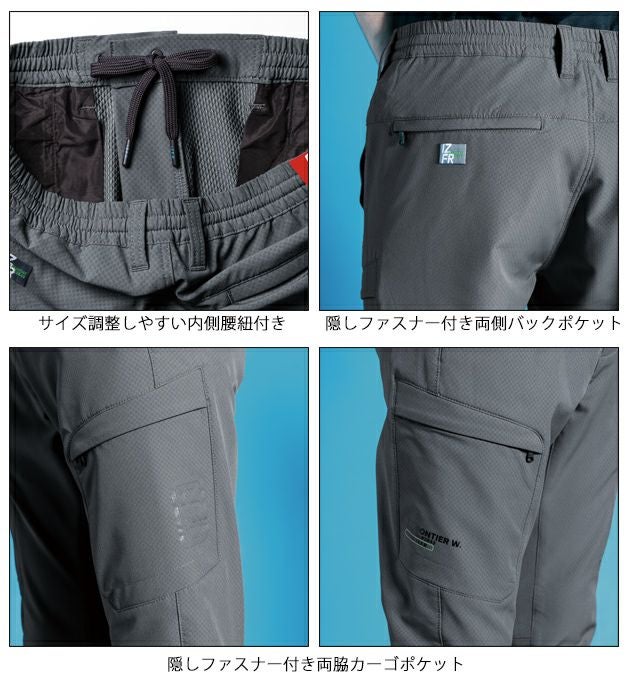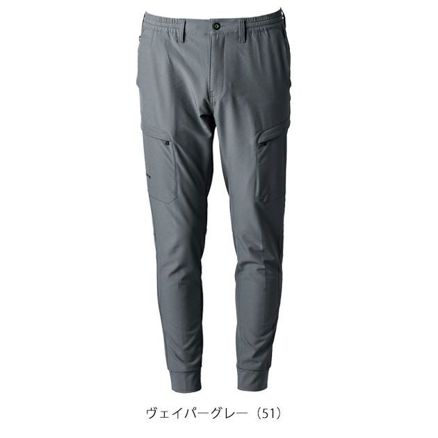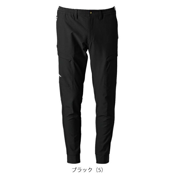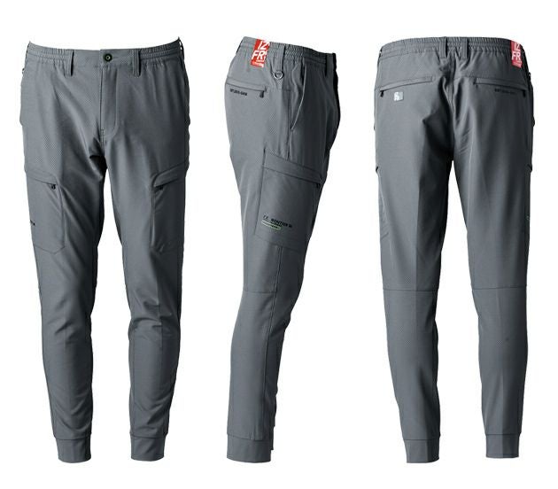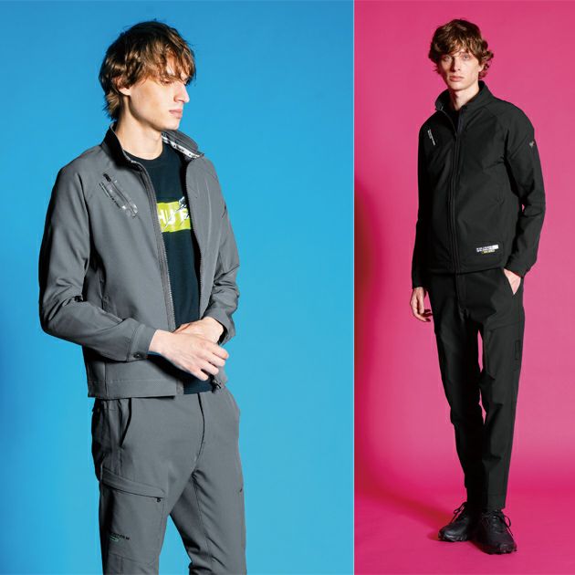 | 【特徴】 | Road to Future 未来を志向するスタイリッシュライダースモデル。 その洗練された高いデザイン性が、ワークウェアの新たな可能性を創造する。 ◆独特な織り構造を採用したワイルド感溢れる二重織素材を採用。色の濃淡をさりげなく表現し、高級感と先進性を兼ね備えた独特のルックスを実現します。 ◆3種類の原糸を絶妙に配する事により年間を通じて快適な着用を実現する3D設計構造。 ◆表面には細番手の糸を高密度に配し高級感溢れるマットなルックスに仕上げ、裏面には2種類の太さの原糸をバランス良く織り込む事により重さを軽減したボリューム感を実現。生地裏面の点接触凹凸構造がエアーポケット効果によるウォーム感生み出し、衣服内の快適を保ちます。 ◆ポリウレタン糸を使用し、伸長率タテ約23%・ヨコ約15%、伸長回復率(1時間後)タテ約90%・ヨコ93%の適度な全方向ストレッチ性能を有し、ストレスのない快適な動き易さと、安定感のあるスタイリッシュなスタイルキープを実現します。 ◆一般基準を大きく凌ぐ引裂き強さ(タテ約17N・ヨコ約71N)を実現。抗ピリング性能や抗スナッグ性能(共に5級)等その他各項目も高い数値を測定した高堅牢性モデル。 ◆シーンを選ばない先進的なシャープなデザインに、アイズフロンティアならではの厳選されたレタリングプリントをプラス。さり気ないリッチ感を演出します。 ◆従来には成し得なかったスタイリングを実現します。 ◆ジョガーパンツは美しいシルエットを表現も、ウエストは平ゴムシャーリング仕様を採用し更なる履き心地の良さを実現。より様々な体形にフィットします。 ◆ファスナーやドット釦等に国産YKK社製を使用。細部にまで拘りを追求しています。 ・サイズ調整しやすい内側腰紐付き ・隠しファスナー付き両脇カーゴポケット ・隠しファスナー付き両側バックポケット |