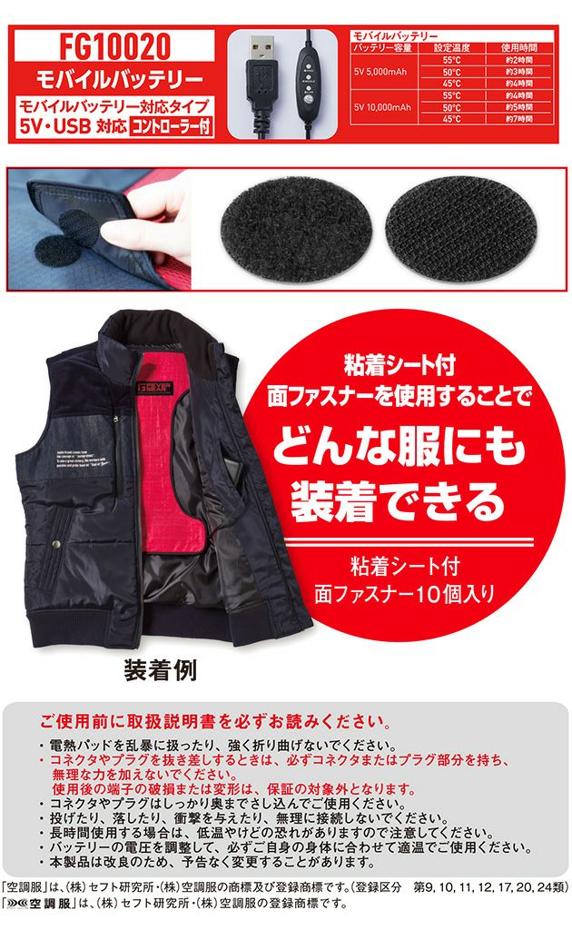 | 特徴 | どんな衣服にも装着可能な電熱パッド。 モバイルバッテリー対応タイプ 5V・USB対応コントローラー付き 粘着シート付で面ファスナーを使用することでどんな服にも装着できる。 (粘着シート付・面ファスナー10個入り) 【ご使用前に取扱説明書を必ずお読みください】 ※電熱パッドを乱暴に扱ったり、強く折り曲げないでください。 ※コネクタやプラグを抜き差しするときは、必ずコネクタまたはプラグ部分を持ち、無理な力を加えないでください。 使用後の端子の破損または変形は保証の対象外となります。 ※コネクタやプラグはしっかり奥まで差し込んでご使用ください。 ※投げたり、落としたり、衝撃を与えたり、無理に接続しないでください。 ※長時間使用する場合は、低温やけどの恐れがありますので注意してください。 ※バッテリーの電圧を調整して、必ずご自身の身体に合わせて適温でご使用ください。 ※本製品は改良のため、予告なく変更することがあります。 |