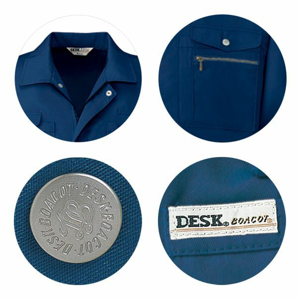 1、ワンポイント 2、ノーフォーク 3、内ポケット 4、オリジナルデザインボタン 5、帯電防止素材使用 6、抗菌防臭加工 |