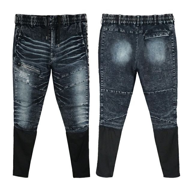 ひざ下にコンプレッションが合体!個性的なデニムパンツ!
