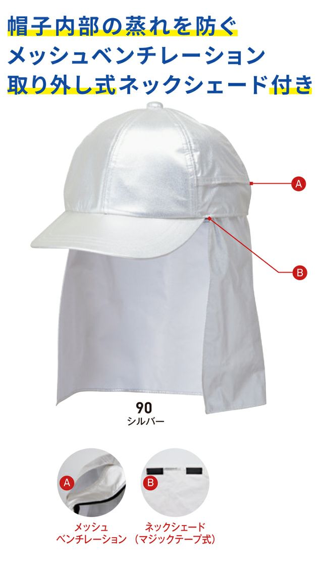 取り外し式のネックシェード付きで首すじへの紫外線と温度上昇を軽減。