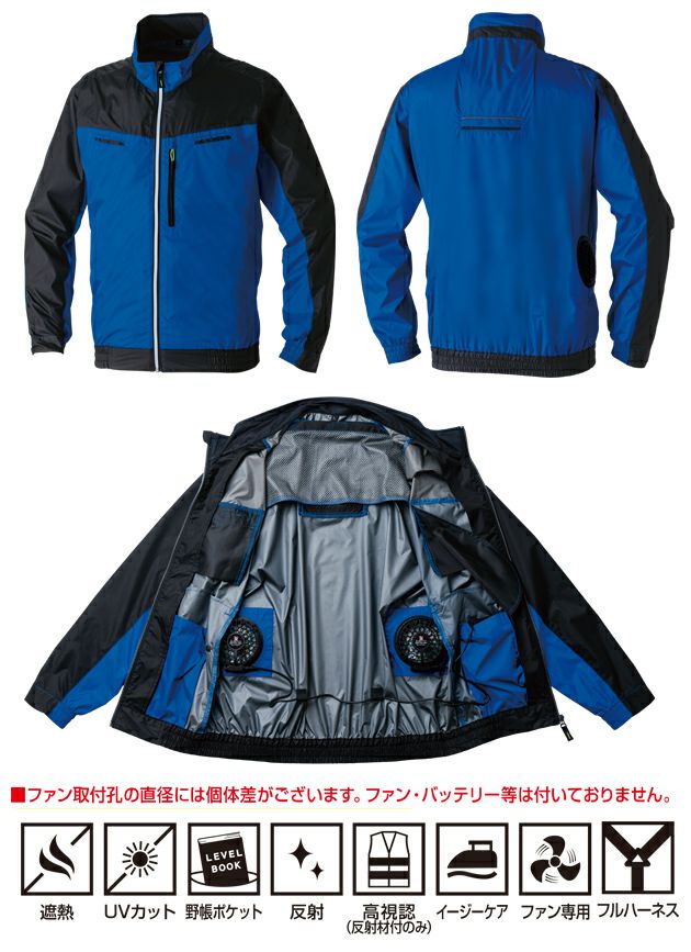 | 【特徴】 | 高視認タイプも選べて、フードも装備可能。 軽量遮熱素材+多機能で自在に使いこなせるオーラウンドEFウェア。 ◆軽量ポリエステル素材を使用したストレスフリーな着心地 ◆裏チタンコーティングの遮熱生地を使用(遮熱率50% S45) ◆エアースルーネックにより首元の風抜け性が高く、涼しい ◆フルハーネス対応商品 ◆収納可能なフック掛けループ ◆運転などの動作を妨げない横付ファン仕様 ◆UVカット率95%以上、UPF50+で、紫外線を防止 ◆男女問わず着用できる幅広いサイズ展開 ◆反射パイピング使いによる高い視認性(背中部分) ◆反射テープ使いによる高視認性(反射材付のみ) ・エアースルーネック ・衿裏メッシュ ・フード取付用ボタン※フードは別売になります。 ・ファスナー隠し ・フック掛けループ(収納可能) ・フード取付用ボタンホール※フードは別売になります。 ・反射パイピング ・ランヤード取出口 ・袖ペン差し ・保冷剤収納ポケット ・ファン取付孔(直径約90mm) ・横付ファン ・胸ファスナーポケット(野帳が入る) ・両側脇ポケット(隠しドットボタン) ・袖口ゴム ・ウエストゴム仕様 |
