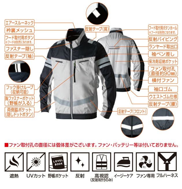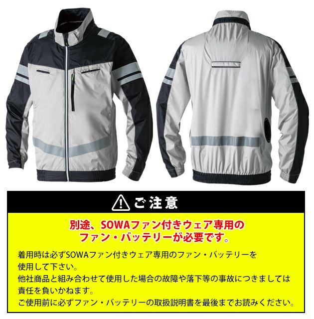 運転などの動作を妨げない横付ファン仕様!UVカット率95%以上 6L SOWA 桑和 空調作業服 作業着 長袖EFブルゾン(反射材) 7369-10