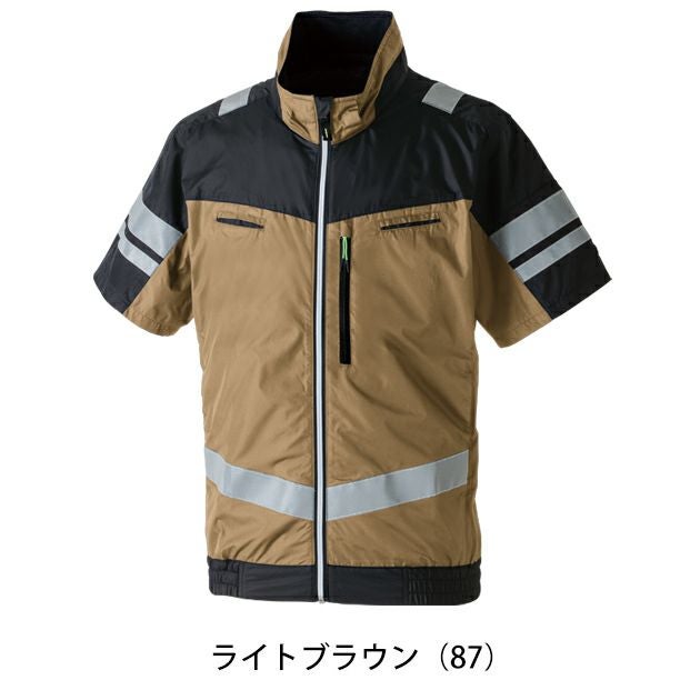 運転などの動作を妨げない横付ファン仕様!UVカット率95%以上 4L~5L SOWA 桑和 空調作業服 作業着 半袖EFブルゾン(反射材) 7369-11