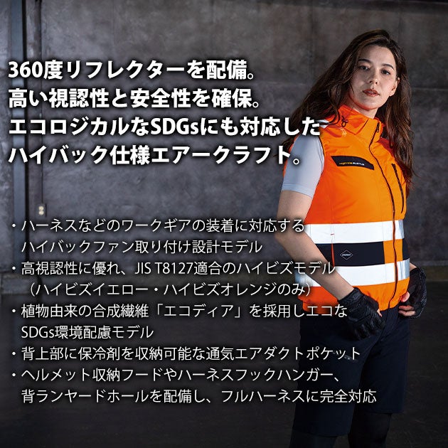 さらに植物由来の合成繊維を使用しエコにも配慮したハイバック空調作業服!