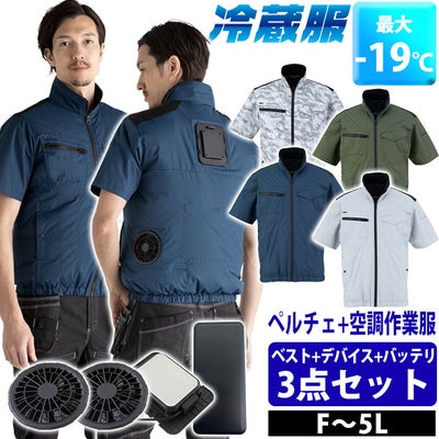 冷蔵庫と同じシステム!大型ペルチェと空調作業服が一つに! ビッグボーン TH614SET 空調作業服 作業着 冷蔵服2026半袖ジャケット(ファン・ペルチェ・バッテリー付き) 3L