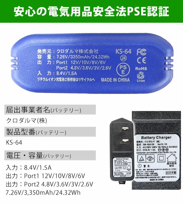 | 製品型番(バッテリー):KS-64 |