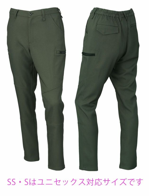 | 【特徴】 | シンプルイズベストを形にしたお求めやすい価格の新商品。 静電気の発生を抑え、ストレッチ性にも優れた素材、さらにウエストに心地よくフィットするバックシャーリング採用。 幅広い業種でご着用いただける男女兼用のユニフォーム。 ・左ベルトループ部分カラビナループ付き(二か所) ・バックシャーリング ・右足ポケット ・左足ファスナーポケット |