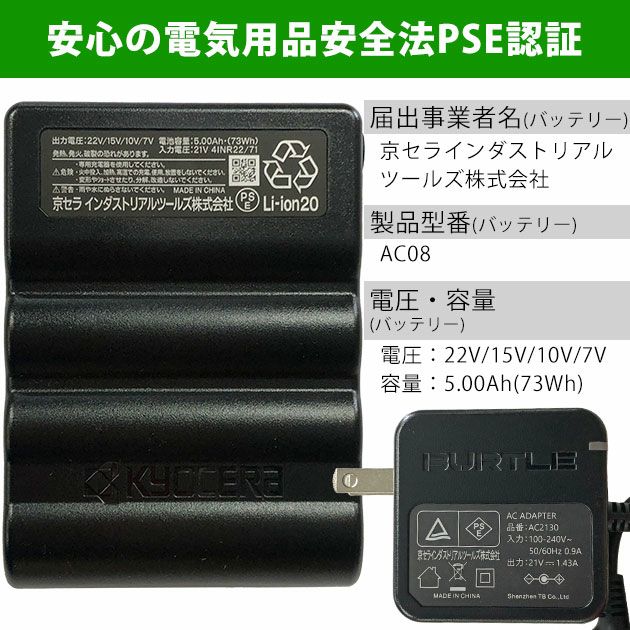 | 届出事業者名(バッテリー):京セラインダストリアルツールズ株式会社 |