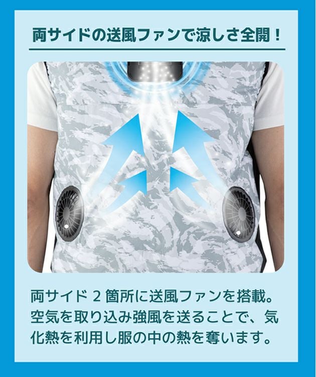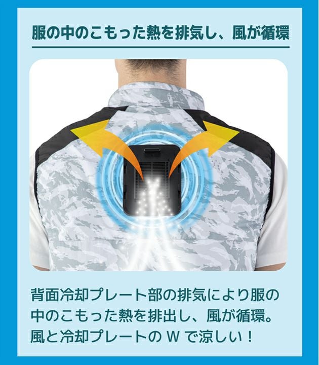 | 【特徴】 | 特許出願中!冷却プレートとファンで火照った身体をクールダウン。 背中の中央部に小型冷蔵庫と同じ冷却プレートを採用。 ◆左胸/ファスナ―ポケット ◆袖周り/ストレッチバインダー ◆デバイスコードホール ◆モバイルバッテリーポケット ◆デバイスコードループ ◆両脇/ハトメベンチレーション ◆大型冷却プレート ◆排熱システム ◆排熱補助用ファン ◆バッテリー仕様 ・寸法 W63×H90×D22mm ・重量 約224g ・充電時間 約6時間(5V2AのACアダプタを使用時) ・使用回数 約500回 |