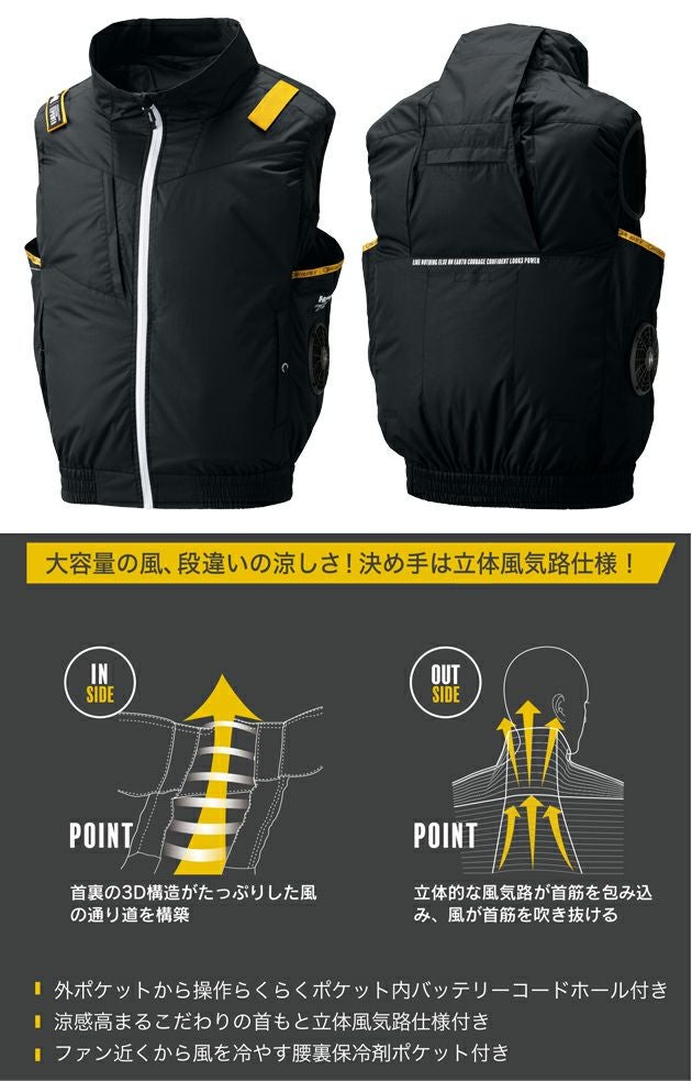 | 【特徴】 | UVカット&遮熱効果の裏チタン生地! HUMMER史上初! 新次元の涼しさで大好評のCIRCULATE V(TM)を搭載したフルハーネス対応サイドファンモデル。 UVカット&遮熱の裏チタン加工生地を使用し、暑熱下のパフォーマンスをサポート。 ◆背もたれに干渉しにくいサイドファン仕様 ファンの位置が通常よりも脇に配置され重機や車の運転時に邪魔にならない ◆立体風気路搭載 首裏の3D構造が風の通り道を確保し立体的な風気路が首筋を包み込み風が首筋を吹き抜ける ◆裏チタン加工 遮熱効果MAX-11.5°C ・両脇ポケット ・右胸ポケット ・フックハンガー取付ベルト ・立体風気路 ・バッテリーケーブルコードホール ・保冷剤ポケット ・サイドファン ・飾り引き手 ・背中フルハーネスランヤード取付口 ・脇通気路CIRCULATEV(TM) |