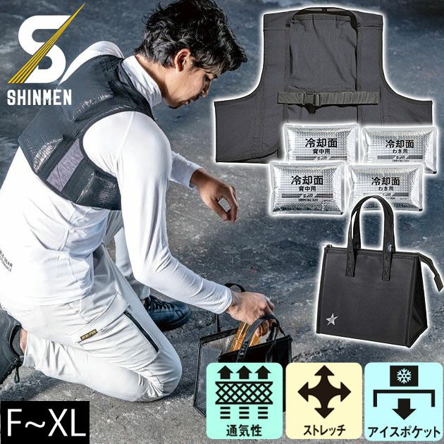 | 【特徴】 | 熱中症対策にピッタリ! アイスベストに保冷バッグも付いてくる! ◆吸汗速乾と通気性にストレッチ性もプラス!快適な素材を採用! ◆背中・両脇アイスポケット ◆アジャスターベルト ◆保冷剤は内側保冷アルミシート採用 ◆セット内容 ・専用ベスト×1 ・保冷剤×4 ・保冷バッグ×1 |
