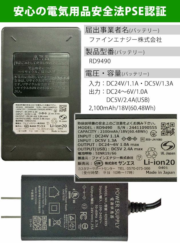 | PSマークの種類(バッテリー):PSE |