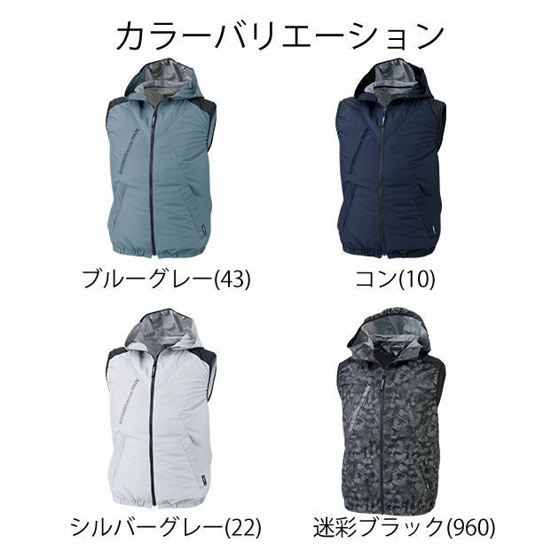 | 特徴 | マイナス5度以上の遮熱効果 遮熱効果の高い空調服にベストタイプが登場。 炎天下で長時間作業をされる方にオススメ。 ヘルメット対応フードは直射日光を防ぎ、ファンからの風はフード内を駆け巡ります。 ◆ヘルメット対応の大型フード。 ◆両脇ファスナーポケット。 ◆調整ヒモで空気の抜けを調整。 ◆左内側バッテリーポケット。 ◆ニットバインダー仕様で空気が逃げにくい。 |
