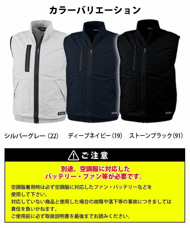 | 特徴 | ハードな現場にピッタリな綿100%ベスト 綿の良さは吸湿性と肌ざわり、そして着るごとに馴染んでくる風合い。 ポリエステルにはない綿ならではの特性を生かしたベストはツヤ消しの金属ファスナーでよりハードな印象に。 ◆右脇 ファスナーポケット。 ◆両脇 フラップ付きポケット。 ◆右脇 ペン差し。 ◆袖口 ニットバインダー仕様で空気が逃げにくい。 ◆首元 調整ヒモで空気の抜けを調節。 ◆シルエット 身頃の膨らみを抑えたシャープなシルエット。 ◇◆ご注意◆◇ バッテリーとファンユニットは別売りとなります。 空調服着用時は、空調服専用のファン、バッテリーを必ずご使用ください。 ◎ご使用前に必ずファンユニット、およびバッテリーの取扱説明書に記載の内容を最後までよくお読みいただき、ご使用上の注意事項、本商品の能力、使用方法など十分ご理解のうえで、ご使用前に動作確認を行い、正しく安全にご使用くださるようお願いいたします。 |