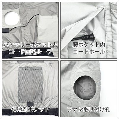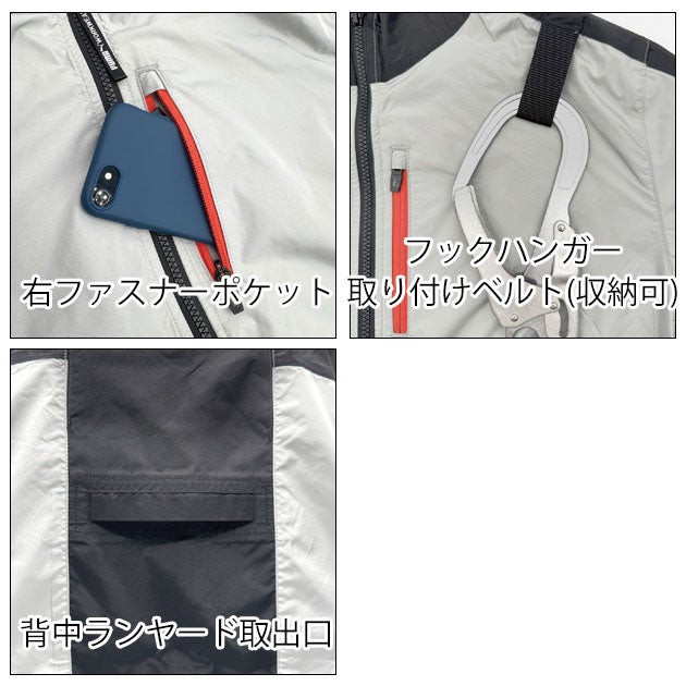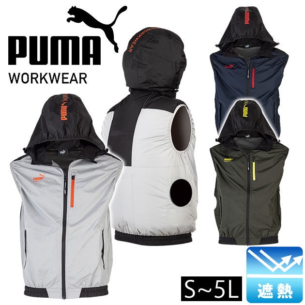 | 【特徴】 | 夏の安全は風を味方につけることから。 PUMAと空調風神服がコラボ! アルミコーティング生地を採用した遮熱空調作業服! PUMAらしいカラーファスナーを効かせたスポーティーモデル! ◆保冷剤ポケット付き ◆バッテリーポケットとコード固定ループ ◆腰ポケット内コードループ ◆左ファスナーポケット ◆フックハンガー用ループ(収納可能) ◆ランヤード取り出し口 |