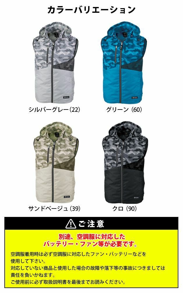 | 特徴 | 迷彩プリントとのツートーンがオシャレなカジュアルタイプベスト。 何より動きやすいのが特徴。 袖口はパイピング仕様にしているので余計な風を外に逃がさず衣類内を回り、首元から排出されます。袖口がシャーリングになっているので肩周りにも風が通り抜け、より快適です。 ◆シャープなシルエット 身頃の膨らみを抑えたシャープなシルエット ◆ボトムはシンプルに 迷彩プリントとツートーン配色でよりカジュアルなデザインベスト。モノトーンや同系色ボトムが〇。 ◆ファスナー付きポケットが便利! ◆フード 取り外し式フード(スピンドル調整付き) ◆右胸 ファスナーポケット。 ◆右胸 ペン差し。 ◆両脇 ファスナーポケット。 ◆袖口 ニットバインダー仕様で空気が逃げにくい。 ◆裾 内側スピンドルで裾調整。 ◆首元 調整ヒモで空気の抜けを調節。 ◆左内側 バッテリーポケット。 ◇◆ご注意◆◇ バッテリーとファンユニットは別売りとなります。 空調服着用時は、空調服専用のファン、バッテリーを必ずご使用ください。 ◎ご使用前に必ずファンユニット、およびバッテリーの取扱説明書に記載の内容を最後までよくお読みいただき、ご使用上の注意事項、本商品の能力、使用方法など十分ご理解のうえで、ご使用前に動作確認を行い、正しく安全にご使用くださるようお願いいたします。 |