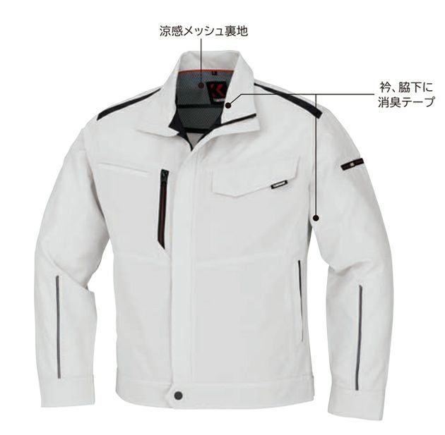 | 【特徴】 | KANSAIデザイン、 洗練された法人ユニフォームが新登場。 左右非対称のデザインや立ち襟、袖に施された反射テープが、機能性とファッション性を両立。 夏冬問わず通年でコーディネートが楽しめ、オシャレで好印象な仕上がりはリクルート対策にも最適。 法人ユニフォームとしての品格を保ちながら、従業員の士気を高めるデザイン性が光る一着。 プロフェッショナルの毎日に、特別な存在感をプラスする新しいスタンダードです。 ・涼感メッシュ裏地 ・衿、脇下に消臭テープ ・背面両ワキにスリット ・袖反射パイピング袖口ダブルカフス ・ドロップテールデザインロゴ入りファスナー |