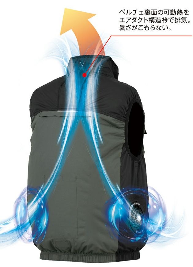 | 【特徴】 | 日傘遮熱(R)×ペルチェクーラーで熱中症から守る。 フルハーネス対応でハードな場面で頼れる空調ウェア! シート着座時にファンが邪魔にならないサイドファン仕様。 ◆日傘遮熱(R) 裏アルミコーティングの「日傘遮熱」でマイナス11度 ◆リップストップ素材 耐久性の高いリップストップ素材 ◆サイドファン ファンが背中に干渉し辛く、着座時等のストレスを軽減 ◆フルハーネス対応 収納式のランヤードフック・背中ランヤード取付口を装備 ◆ペルチェネックホルダー 首元にペルチェ装着が可能(ペルチェなしで空調ウェアのみの使用も可能) ◆保冷剤ポケット3ヶ所 背中・両脇の3ヶ所に保冷剤を装着できるから効果的に体を冷やします。 ◆衿ワイヤー入り 形状記憶ワイヤー入りで、風気路をつぶさず首元に風を効率的に送ることが可能 ◆オーロラロゴプリント 見る角度により色が変化するオーロラロゴプリントを右胸にデザイン ◆反射 反射素材で視認性をキープ(背中) ◆ボルトアイスペルチェクーラーユニット(別売) ペルチェ裏面の可動熱をエアダクト構造衿で排気。暑さがこもらない。 ◆衿裏メッシュ 衿裏ペルチェネックホルダー ◆裾ずり上がり防止ループ 裾のループをベルトに固定することによって、腕の上げ下げによる裾のずり上がりを防止します。 ◆背中ランヤード取付口/反射テープ付 ランヤードの通しロのマジックテープで測れを防止。装時の様わしさをより快適に。 ・コードストッパー(マジックテープ留め) ・左内側バッテリーポケット ・収納型ランヤードフックハンガー ・ポケットでバッテリー・リモコンが操作可能(胸、脇) ・右胸オーロラプリント ・両胸ポケット ・左袖マルチポケット |