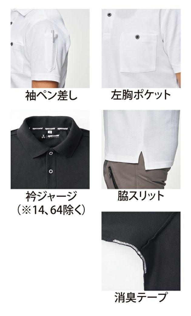 | 【特徴】 | しっかり感◎の肉厚鹿の子地を使用したカラーポロシャツ。 吸汗速乾機能付きで、夏場にはぴったりのアイテム。 カラー、サイズバリエーションも豊富で、一枚でかっこよく着用出来ます。 ・袖ペン差し ・左胸ポケット ・衿ジャージ(ペイントグリーン、ペイントグレーは除く) ・脇スリット ・消臭テープ |