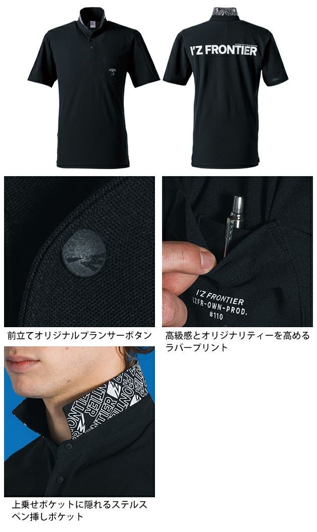 | 【特徴】 | Toward a world of diversity ワークシーンにとどまらない飽くなき探求がたどり着いた次代のトレンド。 あらゆるシーンを魅了する至高のユーティリティーウェア鮮烈デビュー! ◆細番手の糸を惜しげもなくふんだんに使用し高級でシャープなルックスを実現。 ワークシーンのみならず様々なシーンをアクティブに演出します。 ◆独自の素材構造により適度な隙間を確保し一般的な天竺素材等と比べ約1.8倍の優れた通気性能を発揮。 同時に一般基準を大きく上回る破與強さも有します。 ◆溶剤浸透加工による快適な吸水速乾性能を発揮し快適な着用感を実現します。 ◆ルックスでの透け感軽減を有するフルダル糸と優れた伸長率を有する高捲縮糸の異なる2種類の糸を採用。ハイレベル (96%)な紫外線遮蔽率(UVカット性能)とタテ約36%・ヨコ約54%の伸長率を誇る抜群のストレッチ性能を両立。 長時間における着用においても型崩れが少なく快適な着心地を実現します。 ◆ハイレベルな染色堅中度と抗ピリング性能を有し、長期固の着用にも清潔感高い安定したルックスを実現します。 ◆素材構造の特性によりJIS基準値をクリアした接触冷感性を有します。 ◆あらゆるシーンを演出するシンプルなカジュアルルックスも、胸ポケットはダブルポケット仕様。 上乗せポケットに隠れるかたちでステルスペン挿しポケットを搭載しワークウェアに必要な機能も併せ持ちます。 ◆お好みによってセレクト可能な3種類のデザインをラインナップ。衿裏側にアイズフロンティアならではのラバープリントを施し高級感とオリジナリティーを高め、前立てオリジナルプランサーボタンがスポーツライクを演出。 ・高級感とオリジナリティーを高める襟裏ラバープリント ・前立てオリジナルプランサーボタン ・上乗せポケットに隠れるステルスペン挿しポケット |