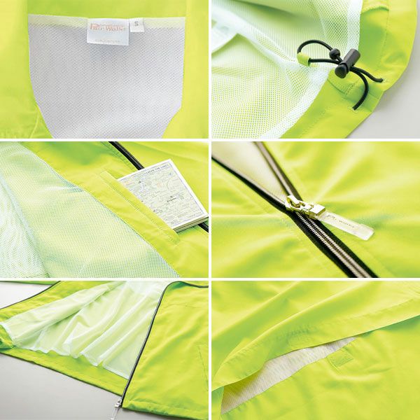 1、背ベンチレーション 2、フロントファスナー 3、内側総メッシュ 4、左内ポケット 5、左脇裾裏ドローコード 6、ポリエステル100%・デュースポ |